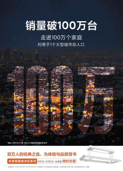 米家智能晾衣機的價值不是自己定義,它是由百萬用戶的良好體驗鑄成。100萬只是開始,米家智能晾衣機步履不停,下一個100萬,在路上!